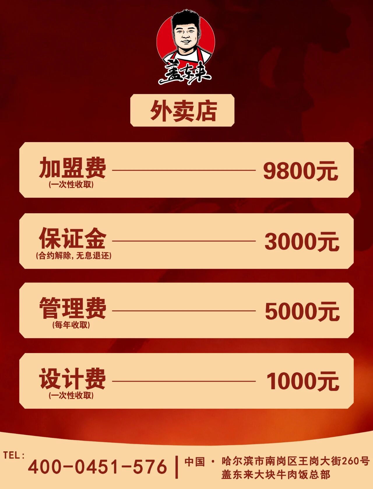 10-20㎡夫妻档,轻投资5-8万,3-6个月回本!不想打工?想开一家属于自己的小店?盖东来大块牛肉饭纯外卖店模式,专为夫妻创业设计。无需堂食、无需大厨、无需高额装修,10-20㎡即可启动,两个人就能转起来,投资小、回本快、风险低。透明投资清单(预计总投入5-8万元)· 加盟费:9,800元· 保证金:3,000元(可退)· 管理费:5,000元/年(含品牌使用、运营指导)· 设计费:1,000元(外卖动线+门头设计)以上为硬性投入,整体控制在5-8万,无隐藏费用,适合资金有限的初创夫妻。为什么3-6个月能回本?· 纯外卖模式:无堂食租金、无服务员成本,只做外卖平台+自提。· 高毛利爆品:大块牛肉饭出餐快(2分钟/份),复购率高,日均150-200单,月净利润轻松过万。· 夫妻操作:一人接单出餐,一人打包备料,分工明确,效率最大化。总部全程扶持从选址评估、平台开店、菜单设计到出餐SOP,总部手把手带教。提供区域保护,一个商圈只开一家。抢占名额轻投资、快回本、适合夫妻的纯外卖项目。名额有限,立即咨询!盖东来·大块牛肉饭——夫妻同心,大块赚钱!加盟热线:400-0451-576
